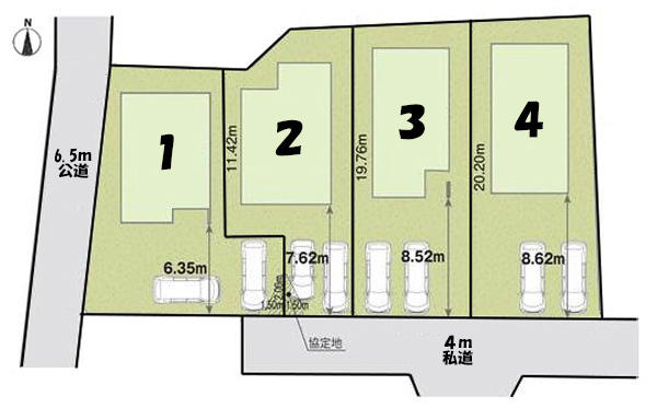 | 接道 | 南 4m(幅員) 私道 西 6.5m(幅員) 公道 |