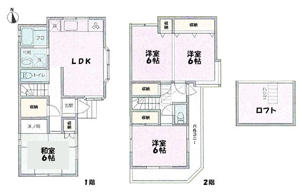 | 間取詳細 | LDK、和6、洋6、洋6、洋6、ロフト |