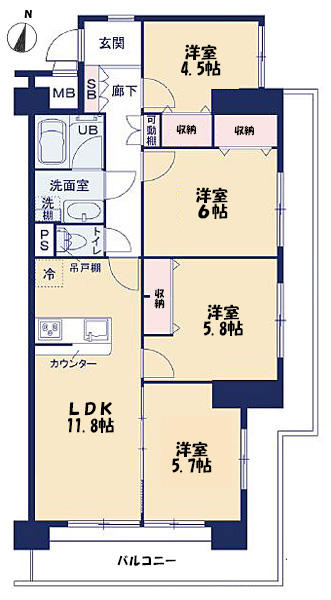 | 間取詳細 | LDK11.8、洋4.5、洋5.7,洋5.8、洋6 |