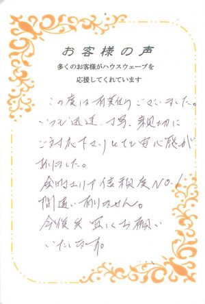 お客様からの喜びの声を頂きまして