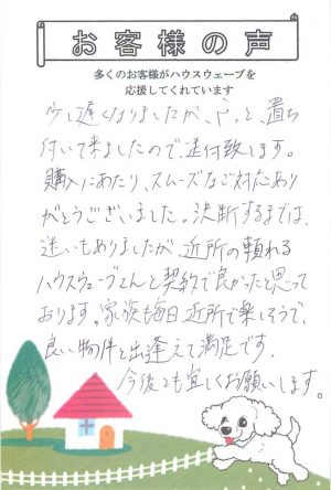 新居でたくさん楽しい思い出を作ってくださいね。